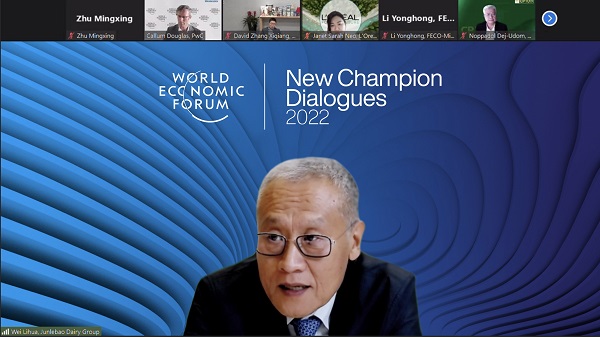 7月19日,君樂寶乳業集團董事長兼總裁魏立華受邀參加世界經濟論壇“2022年新領軍者對話會”,分享君樂寶綠色可持續發展經驗,與各行業專家和企業家深入交流。作為“消費價值鏈脫碳”主題環節唯一中國企業代表,魏立華分享了君樂寶全產業鏈的綠色生產體系,與各國企業領袖共同倡導“健康發展、綠色發展、可持續發展、減碳”,讓世界更美好。